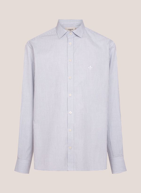 Confeccionada em tecido plano, a Camisa possui modelagem Slim Fit, colarinho Firenze Slim, mangas longas, punho quadrado com abotoamento, detalhe logo bordado no peito, padronagem Xadrez e vista frontal por fechamento em botões.